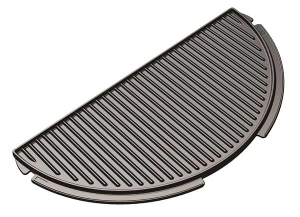 De Halve maan Gietijzeren Plancha zitten 2 kanten. De geribbelde kant is uitstekend geschikt voor visfilets of tosti’s, de gladde kant voor eieren of bijvoorbeeld pannenkoeken. Omdat deze gietijzeren bakplaat maar de helft van het rooster van je Big Green Egg inneemt, hou je nog ruimte over om te grillen.