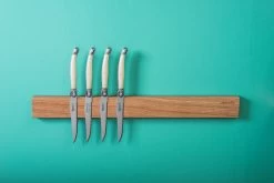 Het handvat is gemaakt van omgebogen roestvrij staal. Ondanks de grove afwerking en het ruige uiterlijk is het mes vlijmscherp en ligt het voortreffelijk in de hand.