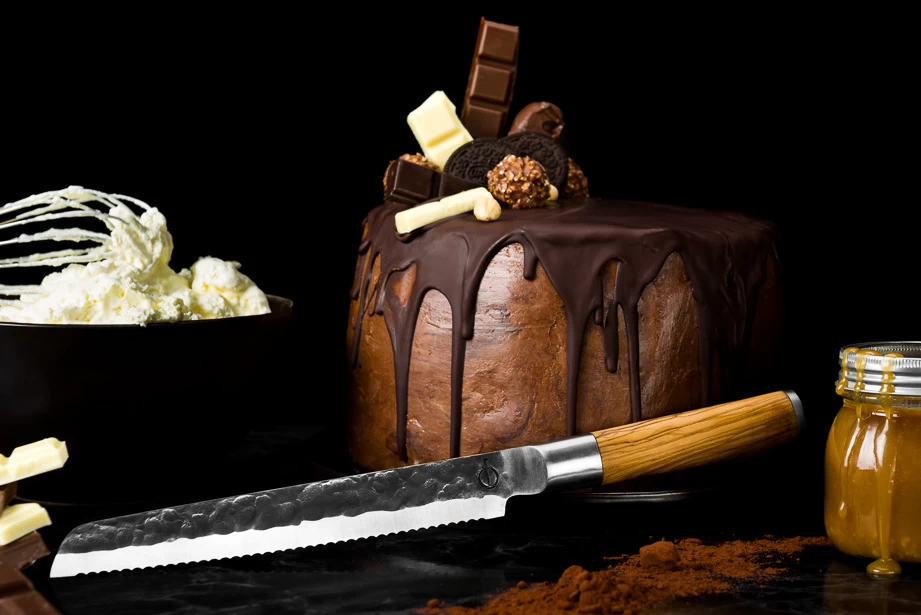 De Olive Forged messen hebben een prachtige olijfhouten handgreep, de handgreep is extra opvallend door de doorlopende krop en de toegevoegde pommel op de achterzijde. De pommel is afgewerkt in dezelfde stijl als het lemmet, waardoor alles één mooi geheel wordt. Het mes is vlijmscherp en ligt het voortreffelijk in de hand. Het lemmet heeft een gehamerde structuur. waardoor het uniek in zijn soort is