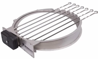 Breidt uw Monolith uit met deze rotisserie, braad heerlijke kip, rollades of ribroasts met deze rotisserie. De rotisserie bevat 1 spies met 2 verstelbare vorken om het vlees tussen te klemmen. Optioneel is de Rotisserie uit te breiden met extra spiesen, deze draaien tegelijk met het spit mee.