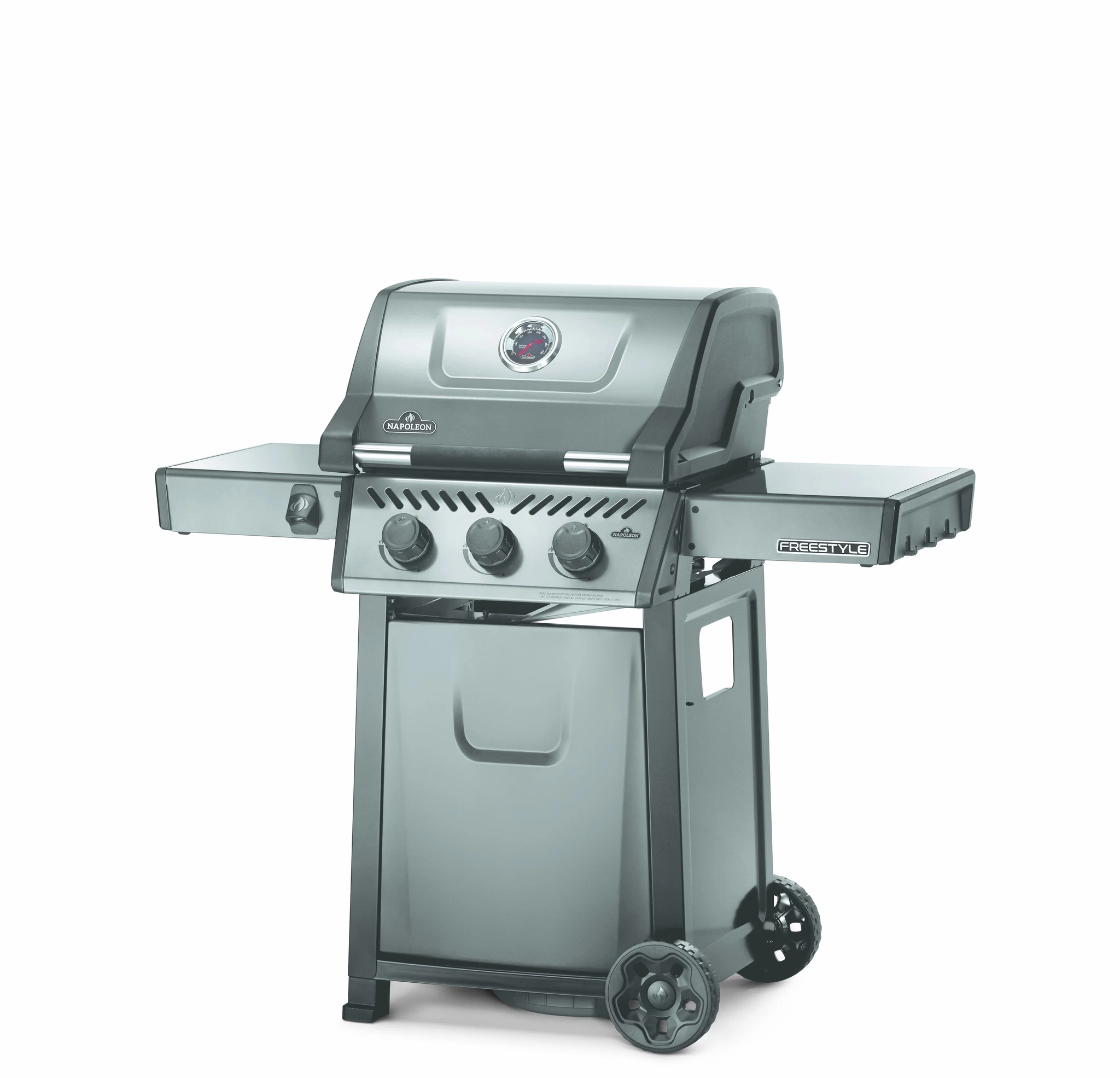 De Freestyle 365 propaangasbarbecue is een compacte grill met premium functies en een onklopbare prijs. Met betrouwbare JETFIRE-ontsteking waarmee de hoofdbranders probleemloos met een eigen, krachtige ontstekingsvlam worden aangestoken. Schroei het vlees perfect dicht boven de gietijzeren grillroosters met porseleincoating. Drie RVS branders bieden warmte die eenvoudig geregeld kan worden met ergonomische knoppen en gecontroleerd met de ingebouwde thermometer. Dankzij de robuuste wielen kan deze barbecue overal naartoe worden gereden, waar hij maar nodig is, terwijl de eenvoudig inklapbare zijtafels met gereedschapshouders en flessenopener ervoor zorgen dat de Freestyle bij uw levensstijl en ruimte past.