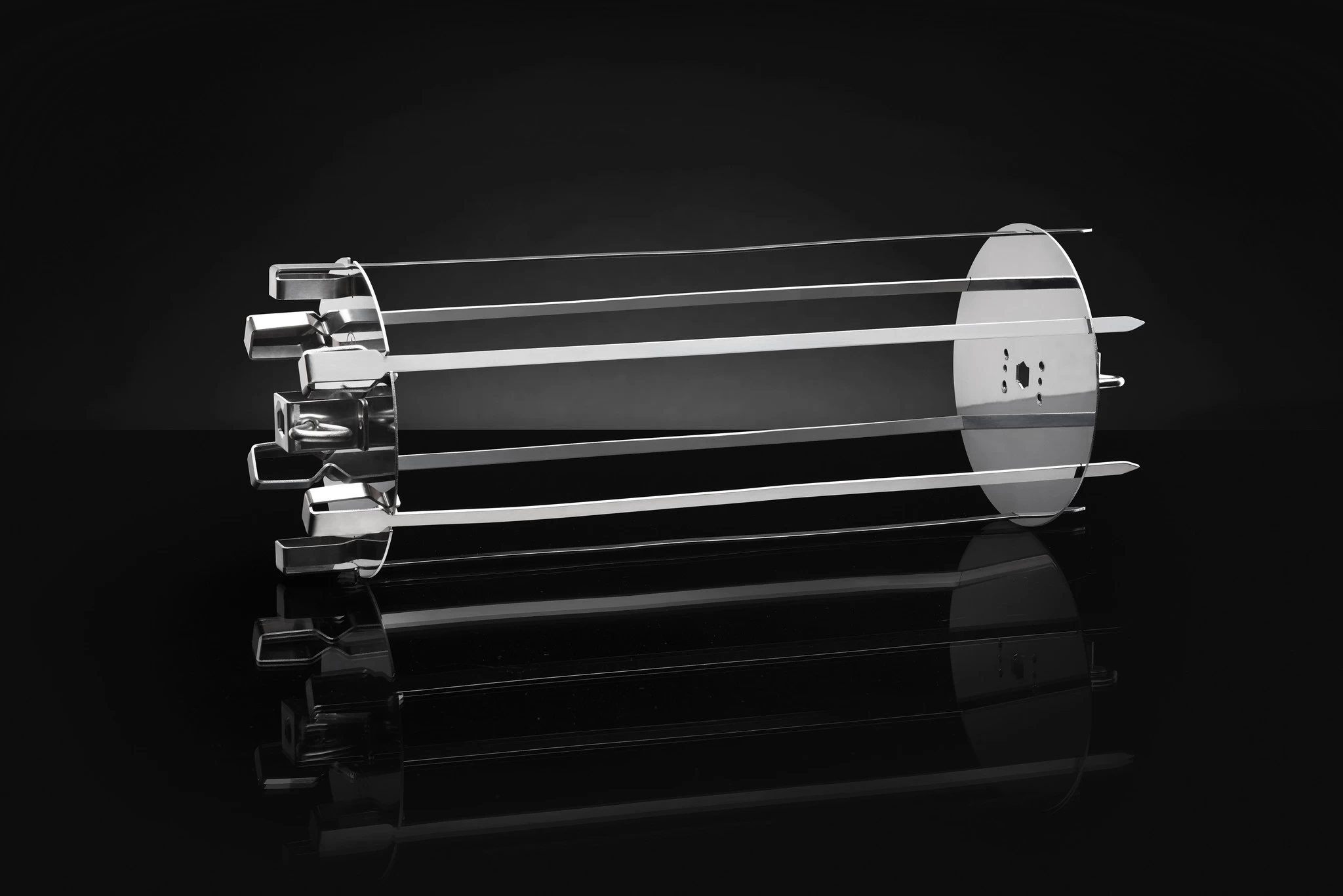 Deze set past op alle rotisseries en maakt het mogelijk veel om veel verschillende producten op je spit te bereiden, zoals vis of vleesspiesjes maar ook lekkere groente spiesen. Doordat de spit draait worden de ingrediënten gelijkmatig gegaard zonder dat je er een vinger naar uit hoeft te steken.