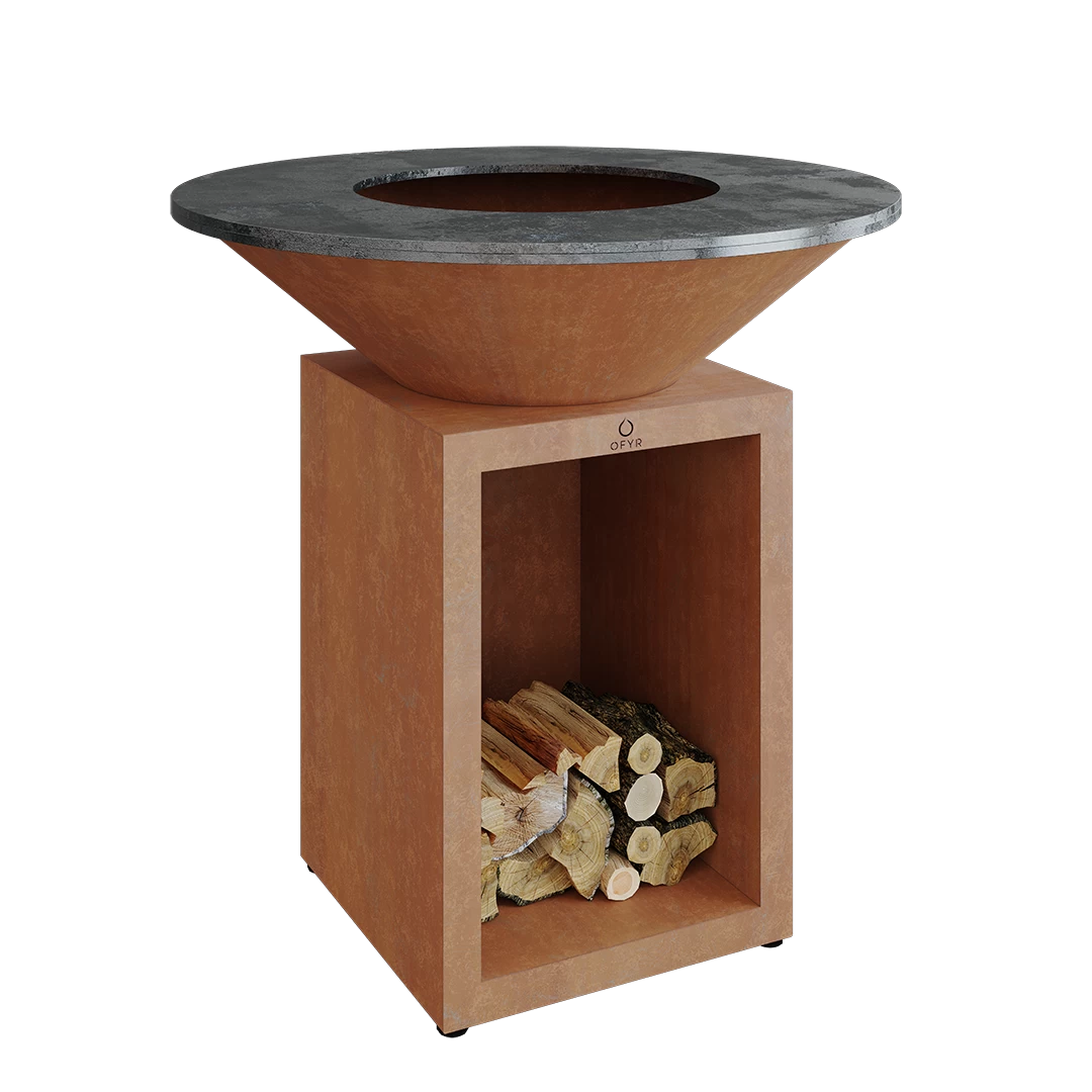 Koken en grillen in de buitenlucht krijgt een totaal andere invulling met de Ofyr Vuurschaal die je ook als grillplaat kunt gebruiken. De vuurschaal is kegelvormig op een voetstuk. Je kunt de kegel vullen met houtskool waardoor het dient als vuurschaal, maar het bijzondere aan deze schaal is de brede rand die je kunt gebruiken als grillplaat om lekker op te kokkerellen.