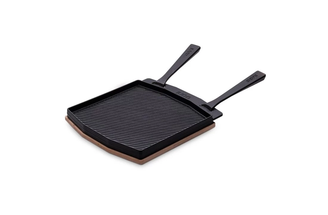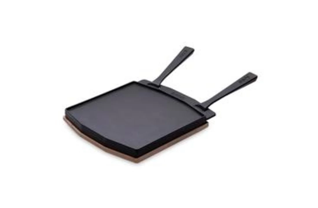 In de Dubbelzijdige grizzlerplaat kun je geweldig vlees, vis of groenten bereiden in een recordtijd. Het voedsel schroeit direct dicht en behoudt daardoor zijn sappen en smaak. De pan heeft een afneembare handgreep en wordt geleverd met houten serveerplank. De pan is dubbelzijdig, de geribbelde kant is geschikt voor visfilets of tosti’s, de gladde kant voor eieren of pannenkoeken bijvoorbeeld .