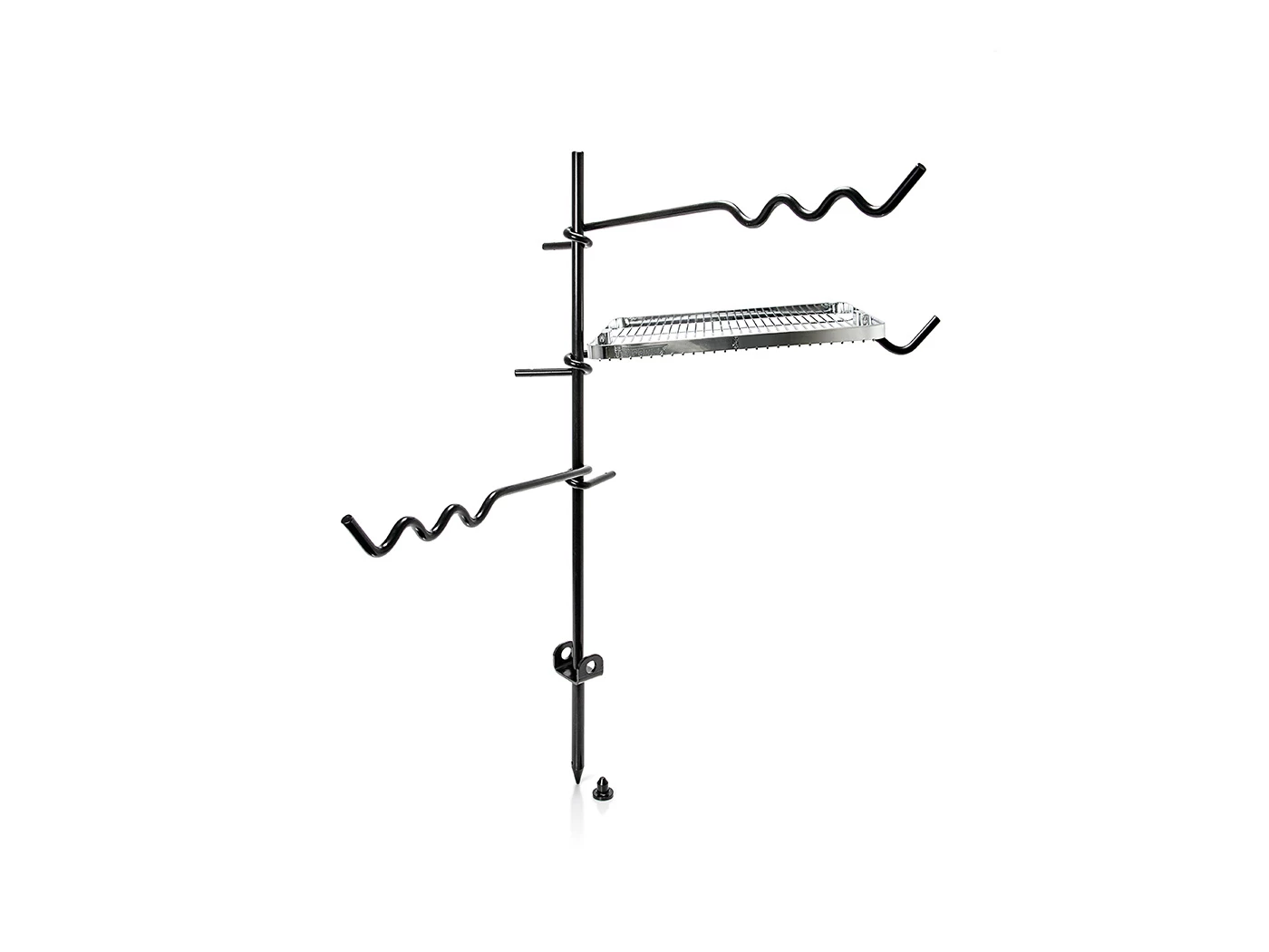 De Fire Anchor van Petromax is gemaakt van duurzaam staal en heeft een hoogte van ongeveer 100 cm, waardoor het geschikt is voor het koken boven open vuren. Het bestaat uit een centrale paal waaraan je 3 extra armen kan bevestigen. Aan de armen kun jij oa dutch oven maar ook koffie kannen hangen. De armen en het rooster kunnen afzonderlijk aan de hoofdstang worden bevestigd en in de gewenste hoogte of richting worden geplaatst. Let op een gelijkmatige gewichtsverdeling en een stabiele verankering in de grond, zodat het anker veilig kan worden gebruikt. Je kunt dutch oven tot en met ft6 aan de draagarmen bevestigen, of het meegeleverde rooster gebruiken voor het grillen van vlees of groenten.