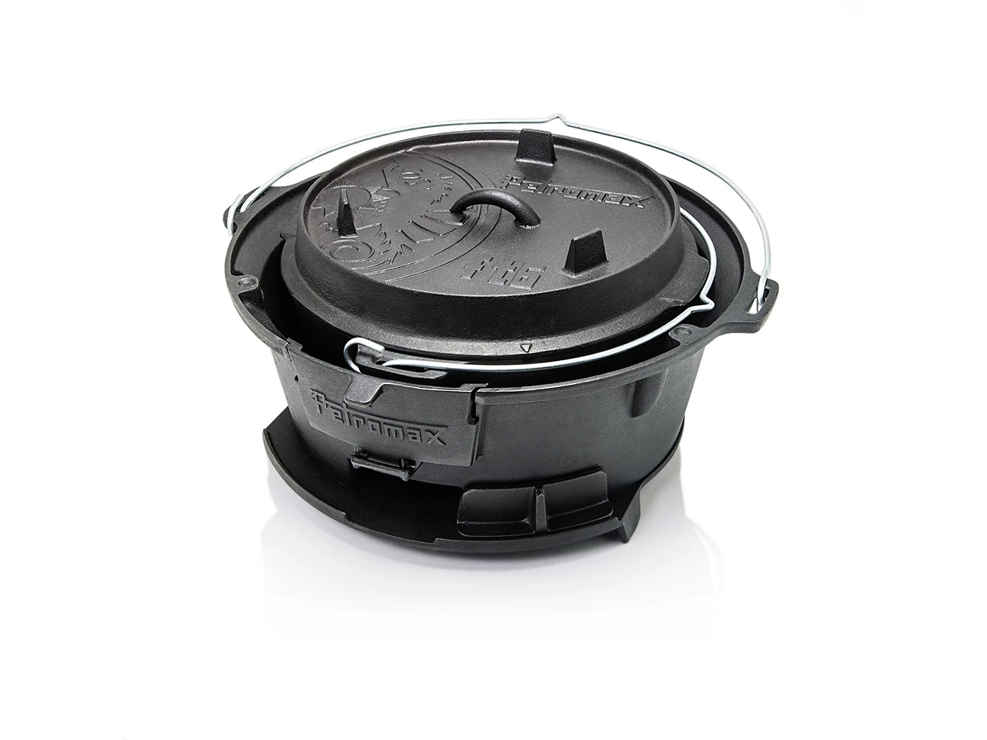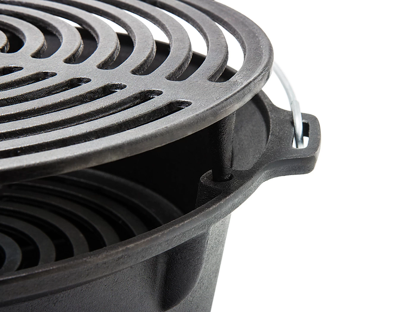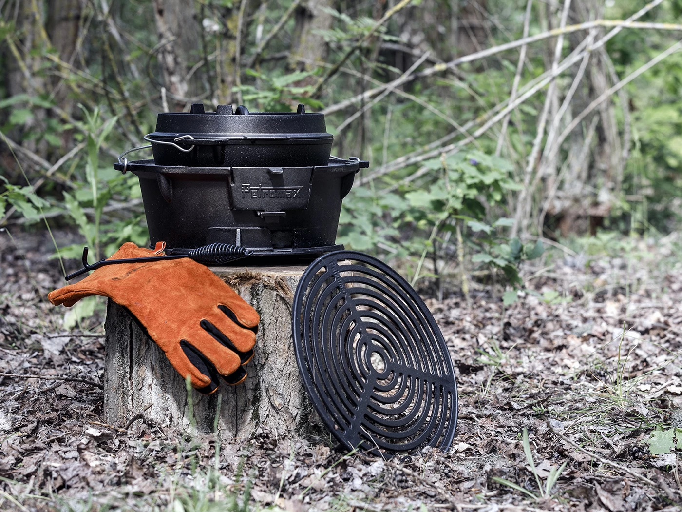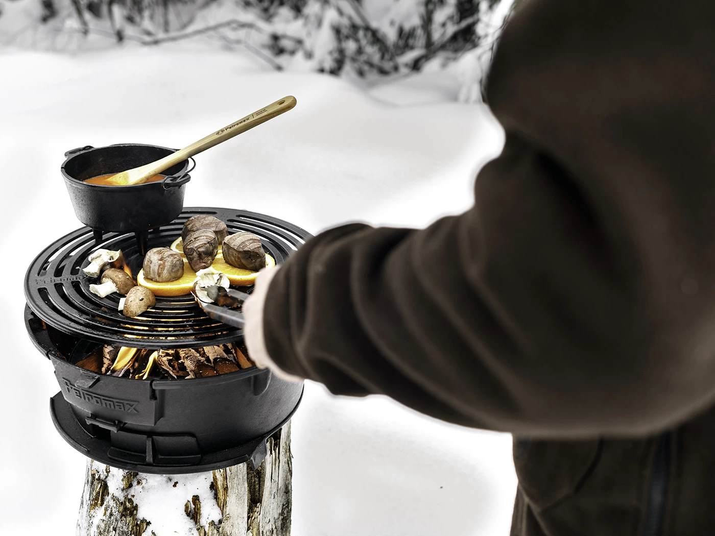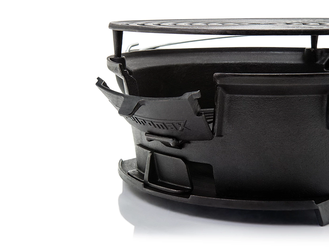 Het gietijzeren materiaal van de barbecue zorgt voor een gelijkmatige warmteverdeling en behoudt de warmte goed, waardoor het gemakkelijk is om het vuur te regelen en voedsel te bereiden met een mooie krokante korst. Tevens kan je de bbq gemakkelijk combineren met je bestaande Petromax Dutch Oven.