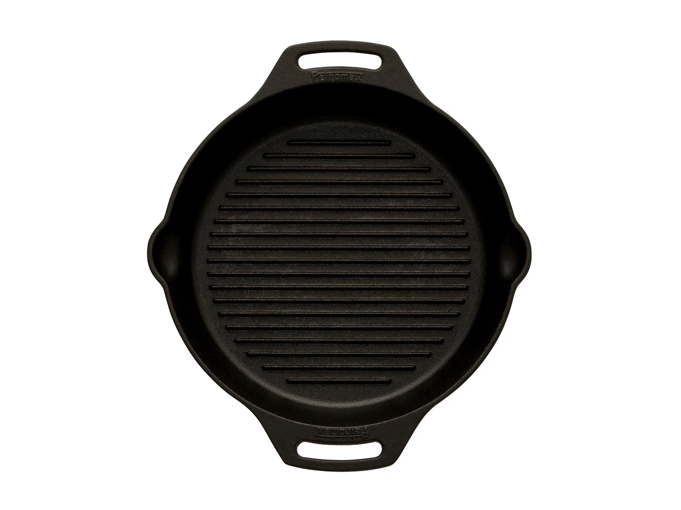 Een Gietijzeren Petromax Grill Skillet is een handig en enorm multifunctionele pan om vlees, vis en groenten te bakken. Een grill skillet heeft meestal ribbels op de bodem, waardoor er grillstrepen op het voedsel ontstaan en het overtollige vet wegloopt. Of je nou een hobbykok of professional bent, deze pan wil je niet missen. Gebruik hem direct in een kampvuur, op een Atago, Rocket Stove of gewoon binnen op het fornuis. Deze Skillet is voorzien van twee handvatten waardoor je hem gemakkelijk in de oven, op het fornuis of in een kamado kan zetten.